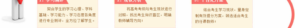 1对1学业辅导、班主任全程监护、心理专家疏导、考试试卷分析;
